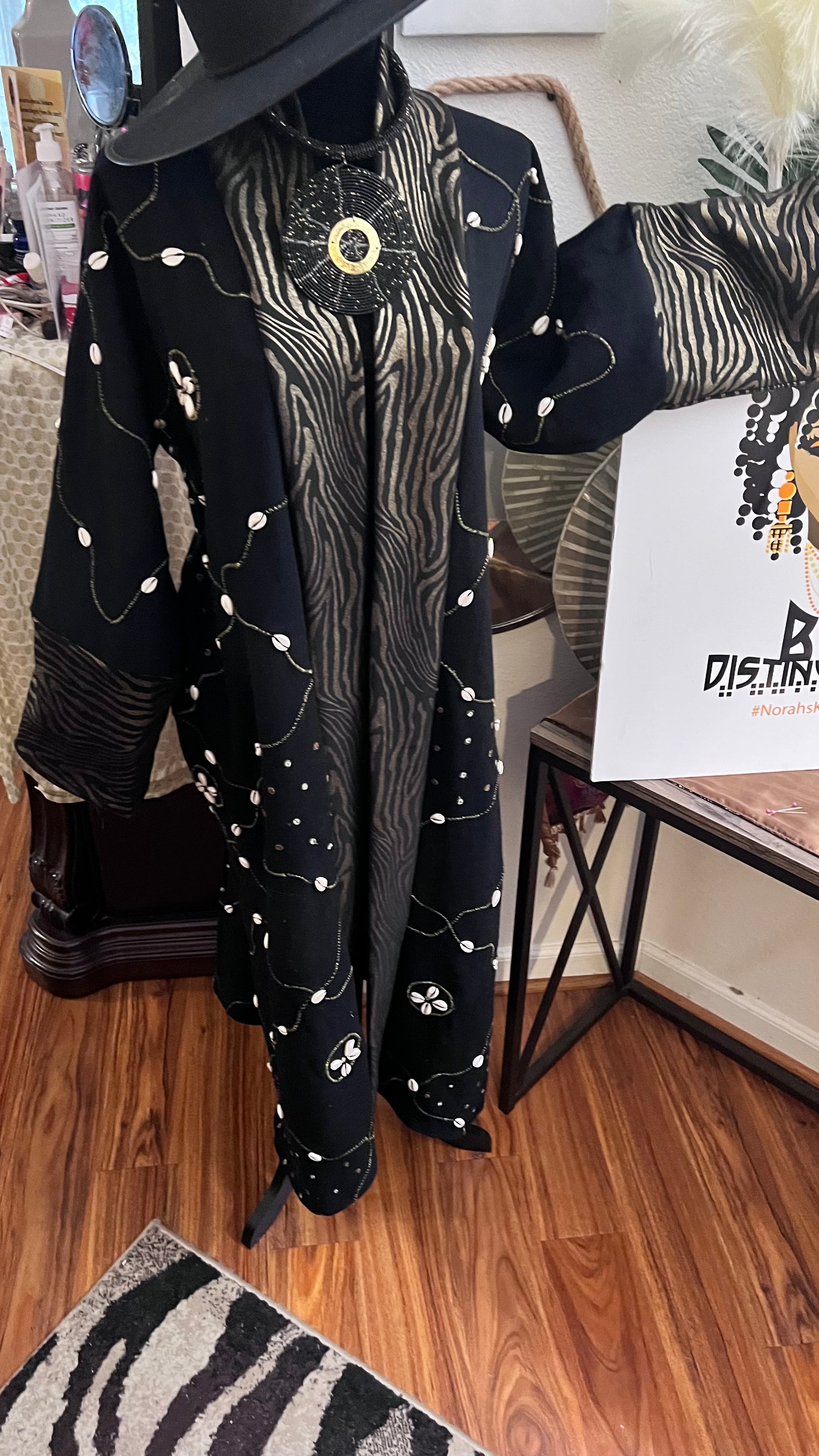 MudCloth Coat by Norahs Khan is Distinctive and Stylish. Distinctive Handmade MudCloth pattern design. More than one MudCloth design may be used to complete coat. Full sleeves and two side pockets. One Size Fit All up to 2x. Ankle Length. Design variations do occur.Allow time to make and ship. Ask Designer for current available MudCloth designs in advance. Will do our best to create a design you will enjoy wearing. Due to Covid 19 ... ALL SALES ARE FINAL ...Be Aware of delays in shipping. Tracking information is emailed when complete design ships.